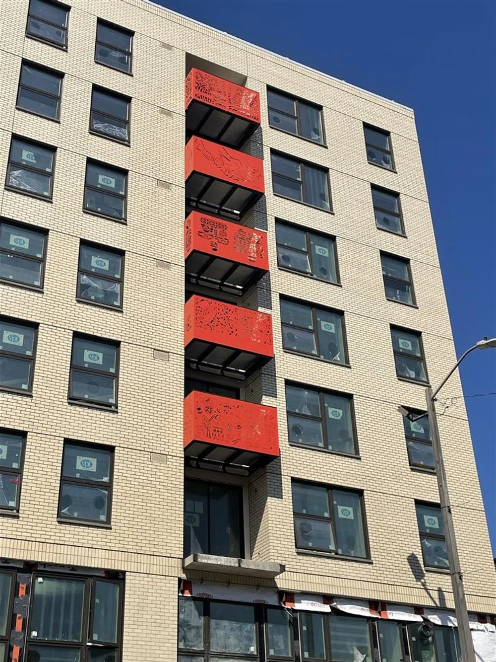 Interim CDA commissioned 12 artists to create thematic balcony rails honoring community organizer and activist, Bob Santos for a new building dedicated to his legacy